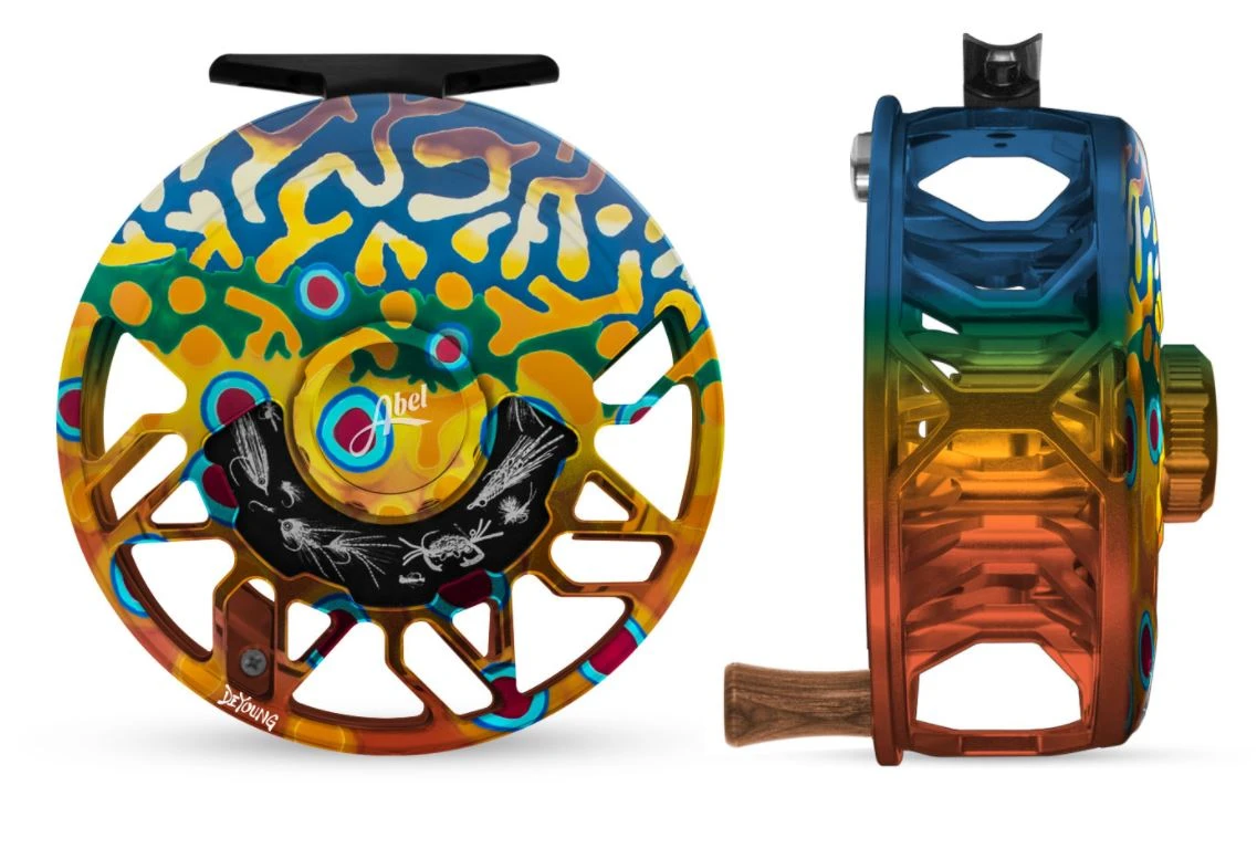 - Laser engraved fresh and saltwater flies on reverse side of drag plate that rotate as line is being retrieved