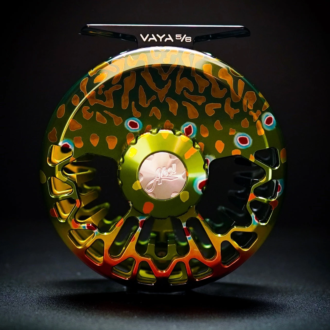 Crafted by avid Colorado anglers, the VAYA series debuts an all-new technical look and feel paired with outstanding performance. The partially-ported VAYA frame offers the unique combination of minimized weight, incredible rigidity, and just enough surface area to highlight Abel’s hand-anodized finishes. The frame interior also features varying sets of CNC-milled fly patterns, relevant to each size of reel.
