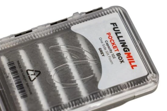 The Pocket Box is the smallest of Fulling Mills’ NEW 100% British range of Fly Boxes. This lightweight polycarbonate box features a sleek, premium looking frosted lid so you can see what’s what. Inside is a one-sided high density, 4mm slit foam with capacity for up to 122 flies. As the name suggests, this box will fit snugly into the average shirt and or trouser pocket, making it the ideal day box. Suited, ideally to smaller flies of sizes 10-14.