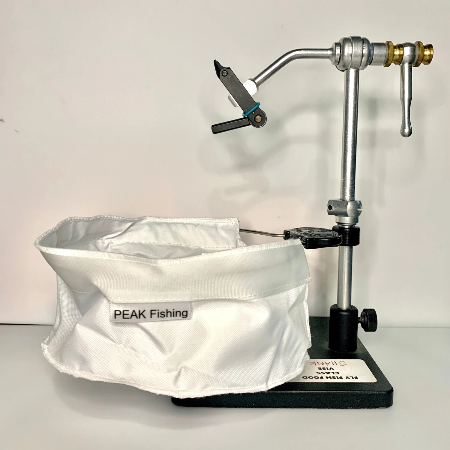Peak waste collector for your fly tying vise. This tool will help keep your tying area free of loose trimmings and is made of durable white nylon. The bag is easily removable for quick clean up.